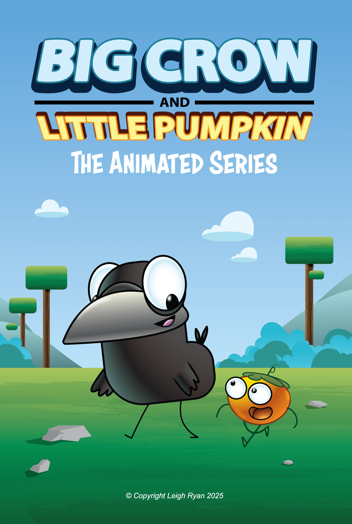 BIg Crow and Little Pumpkin: The Animated Series. Big Crow, a cautious and lovably grumpy ex-wizard turned delivery bird, and Little Pumpkin, his gleefully chaotic magical minion, travel a whimsical world where logic takes a backseat and mayhem is always around the corner! With reckless-yet-effective solutions, bizarre detours, and an ever-meddling Cherry Tomato neighbour, their deliveries are anything but ordinary. Think Zootopia meets Postman Pat with a sprinkle of Animaniacs’ surreal, self-aware slapstick.
